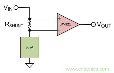 設計者通過將一個非常小的“分流”電阻串聯在負載上,在兩者之間設置一個電流感應放大器或運算放大器,實現用于系統保護和監測的電流感應。雖然專用的電流感應放大器能夠發揮十分出色的電流感應作用,但如果特別注重功耗的情況下,精密的毫微功耗運算放大器則是理想的選擇。