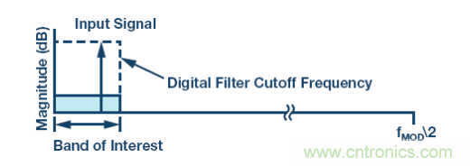 此外,Σ-Δ 架構(gòu)可能集成數(shù)字濾波器,用來(lái)移除目標(biāo)頻段外的量化噪聲,實(shí)現(xiàn)出色的動(dòng)態(tài)范圍性能,如圖 3 所示。