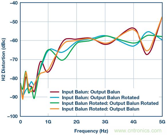 圖6.使用供應(yīng)商1B巴倫和不同巴倫方向重新測(cè)試HD2性能。