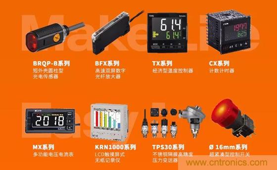在此體系之下,企業(yè)近日再度推出了大量傳感器、控制器等新產(chǎn)品,其中包括短外殼圓柱型光電傳感器BRQP-B系列,高速雙屏數(shù)字光纖放大器BFX系列,溫度控制器TX系列,計數(shù)計時器CX系列,多功能電壓電流表MX系列,LCD觸摸屏式無紙記錄儀KRN1000系列,不銹鋼隔膜高精度壓力變送器TPS30系列,Ø 16mm控制開關(guān),以及節(jié)省布線時間50%以上的傳感器連接器CNE系列......