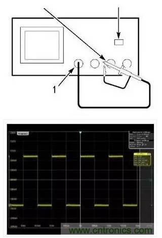 探頭補償調(diào)節(jié)的操作步驟如下: 1.將示波器探頭連接到通道,按前面板上的PRESET(預設)按鍵(左側面板設置區(qū)域中)。將探頭信號端和參考地連接到示波器面板上的參考輸出,然后按 Autoset(自動設置)。如果使用探頭鉤式前端附件,請將信號針前端牢固連接在探頭上,確保正確連接。如組圖一所示: