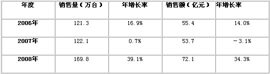 表1 2006-2008年中國數(shù)碼攝像機市場銷售情況