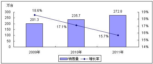 圖1  2009-2011年中國數(shù)碼攝像機銷售量預(yù)測