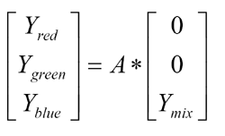 為您的系統(tǒng)設計LED控制機制,面對的是基本的線性代數(shù)。在得到您LED的色度坐標后,您必須先建立一個矩陣,找出所要色彩點之間的delta值,如公式1所示。公式中色彩下標字是LED的顏色,mix下標代表您想要呈現(xiàn)的顏色。