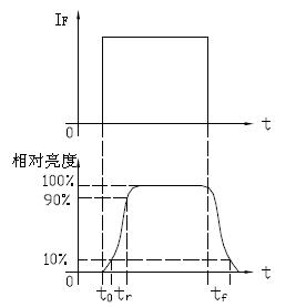 1.響應時間從使用角度來看,就是LED點亮與熄滅所延遲的時間,即圖3中tr tf 。圖中t0 值很小,可忽略。