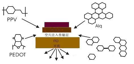 對高分子有機EL的研究工作比對小分子有機EL的研究,起步要晚得多。直到1990年,才由Burroughes及其合作者研究成功第一個高分子有機EL器件。此后,為了發展聚合物EL技術,在美國和歐洲進行了大量的研究工作。人們一般都隊為,聚合物材料比有機小分子材料要穩定,這也就成了發展聚合物EL的原動力。