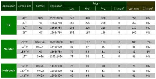 - 監視器16:9產品面板價格將有所修正,預估跌幅在5美元以內震蕩