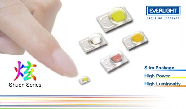 億光電子堅持以設計融入應用,將應用融入生活中,并以這樣的概念搭配先進的陶瓷封裝技術、專業的制程并考慮散熱以及電路簡化等重點,研發出高亮度、低熱阻、小尺寸及薄型化的表面貼裝型高功率LED組件系列,產品名稱為“炫”(Shuen),此一突破大大的減低高效能LED的封裝尺寸。