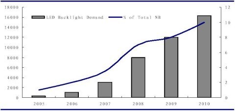 - LED 在筆記本中的滲透率,2007 年大約是3%,2008年是6%-8%
