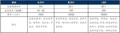 表7 白熾燈、熒光燈、LED三種照明技術對比