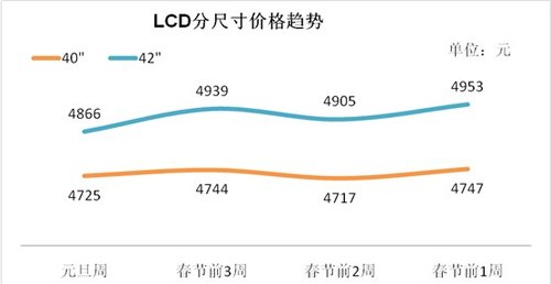元旦到春節(jié)前的旺季內(nèi)不僅城市市場有很強(qiáng)的爆發(fā)力,而且村鎮(zhèn)市場的需求量將會得到極大的釋放。所以,從元旦到春節(jié)前連續(xù)6周的市場旺季整體市場的均價將會有一定的波動。以40英寸和42英寸液晶電視為例來看,價格將呈現(xiàn)小幅周度波動的變化。(詳見下圖)