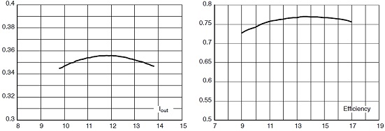 這參考設計在不同交流輸入電壓條件下的輸出電流及在不同直流電壓條件下的能效測試結果分別如圖3a及3b所示。其中,如圖3b所示,這參考設計在11至17 Vdc范圍下能效高于0.75,這個能效數據在這類低功率應用中表現亮眼。