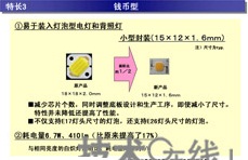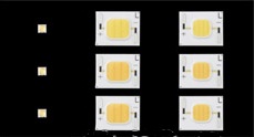 • 第一類在底板上配備多個LED芯片,輸入功率為0.5W時實現了38lm,顯色指數為85