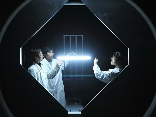 圖:技術人員在測試LED照明燈