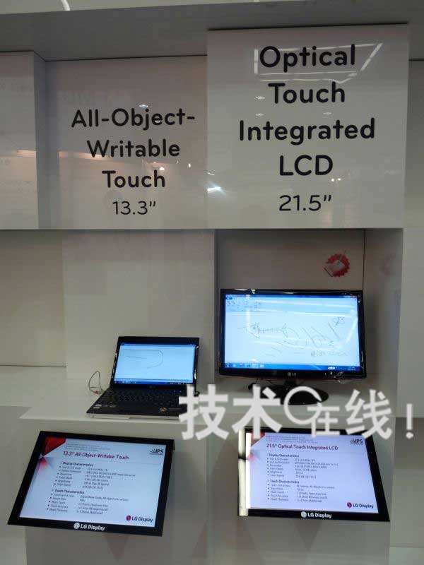 嵌入光學(xué)式觸摸面板功能的13.3英寸液晶面板,以及內(nèi)置觸摸面板功能的21.5英寸液晶面板(LG顯示器)