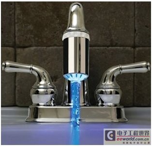 LED應用進入家用,圖為LED變色自發電發光水龍頭燈
