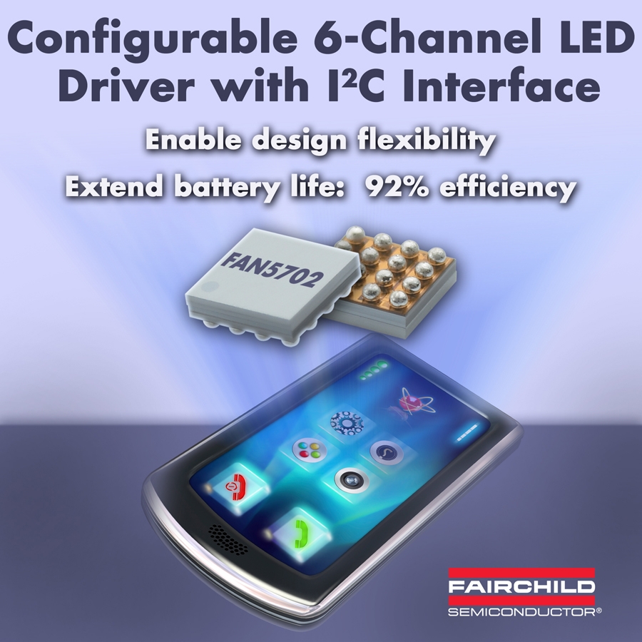 FAN5702是具有I2C 接口的可配置、180mA、6通道LED驅(qū)動器,可提供以下優(yōu)勢: