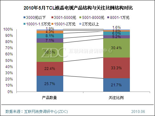 (圖)2010年5月TCl液晶電視產品結構與關注比例結構對比