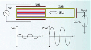 CCFL通常作為筆記本電腦和便攜電子設備的彩色液晶顯示(LCD)的背景光源,CCFL是目前最高效的顯示器背景照明光源。由于運行CCFL需要高交流電壓,所以需要高壓DC/AC逆變器。基于PZT的逆變器可以提供正弦輸出電壓,這非常有助于減小RF輻射。RF輻射可能干擾其它電子設備,并可能降低整個系統的運行效率。另外,基于PZT的逆變器所產生的正弦激勵還可以在CCFL中產生最優的電流到光的轉換效率。CCFL的工作電壓比其它光源的電壓要高很多,通常需要300到800伏交流電(取決于燈的長度),但整體功耗非常低。