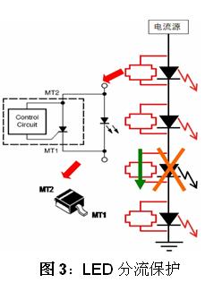 3)利用LED電流旁路保護(hù)器來增強(qiáng)LED串可靠性