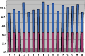 從上可見,運用48的組合點校正值即可得到56mcd的期望亮度。請注意,由于溫度引起亮度下降,故本計算中的起始電流被設置為起始生產電流的90%。