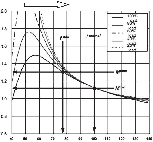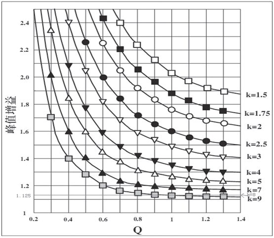 圖7 LLC諧振變換器的典型增益曲線(k=8)