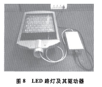 自動斷開,整個控制電路工作,從而減少恒壓電源的輸出,當溫度降低到48℃時,溫度繼電器自動閉合,并使電源正常輸出。經過測試,得出驅動器Vo端與Trim端之間連接的總電阻值尺與驅動器輸出電壓Uo之間的關系,見表2。可以看出:隨著電阻的增加,輸出電壓呈減小趨勢。當溫度達到60℃時,圖7控制電路中溫度繼電器Kt斷開,此時,只要電阻匹配得當,我們便可以得到設定的輸出電壓。各阻值計算方法同上,在此不作具體計算。3試制驅動器實測結果本項研究進行了大功率LED路燈和LED投射燈及驅動器的研制工作。圖8為LED路燈樣燈及其恒流驅動器,燈體采用一體化設計,測得常溫輸入驅動器的交流電流為270mA,燈長時間運行狀況良好,其總光通量為3 408 lm,在控溫作用時,輸出電流減小為常溫的87%。圖9為LED投射燈樣燈及其恒壓驅動器,測得常溫下輸入驅動器的交流電流為140mA,總光通量為1 011 lm,在控溫作用時,電壓減小為常溫的90%。