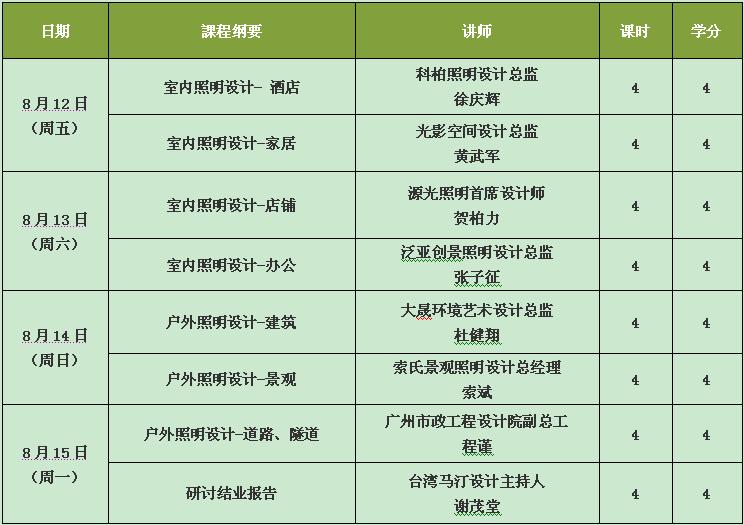 城市建設的發展,人居環境的改善,要求設計師通過科學的照明設計來達到各種照明環境的特定要求,廣東光亞照明研究院聯合CLDA華人照明設計師聯合會,繼《照明設計基礎班》成功舉辦后,于2011年8月12-15日,開展為期四天的《照明設計專業培訓班》,旨在培養對室內外光環境進行綜合設計的人才,提高照明設計人員的專業素質。