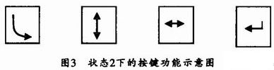 在狀態1及狀態3下,按鍵的功能比較容易理解,這里來對狀態2下的按鍵功能進行說明,圖3所示依次為1、2、3、4鍵。其中按鍵1可進入設定狀態,上面一行顯示參數的值,下面一行顯示當前是第幾個參數;按鍵2用于對當前閃爍數據位進行加1操作,可依次從0增加到9,當增加到10時,又自動變為0;按鍵3用于改變設定的位,每按下一次,閃爍數據位向后移動一位,當移動到第四位再按下此鍵時,閃爍位變為第一位;按鍵4用于確認參數的設定和保存。