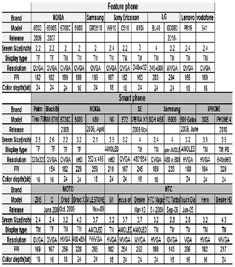 圖1 市面上常見手機的屏幕參數(shù)[page]
