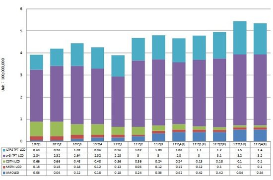 • 小尺寸面板2011年出貨達17.1億片