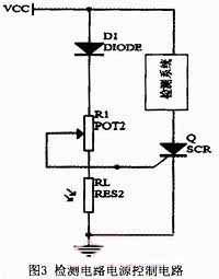 單向可控硅是一種可控整流電子元件,能在外部控制信號(hào)作用下由關(guān)斷變?yōu)閷?dǎo)通,但一旦導(dǎo)通,外部信號(hào)就無法使其關(guān)斷,只能靠去除負(fù)載或降低其兩端電壓使其關(guān)斷。單向可控硅正向?qū)ㄊ芸刂茦O電流控制,根據(jù)此特性,在光敏電阻的作用下,利用單向可控硅作為檢測系統(tǒng)的啟動(dòng)開關(guān)。
