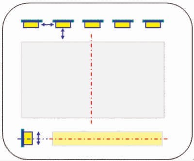 對背光的合理設計可以提高LED的利用效率。影響LED利用效率的結構參數(shù)主要有3個:LED之間的距離;LED發(fā)光面到LGP入光面之間的距離;LED發(fā)光面和LGP入光面兩者的垂直距離。如圖3所示。只有將三者綜合考慮才能最大化LED的利用效率,從而降低功耗。