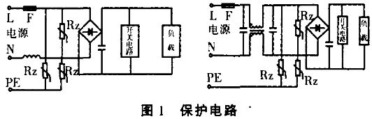 一般應(yīng)在電子鎮(zhèn)流器的電源線路或者其他被保護(hù)的電子元器件前端設(shè)計(jì)瞬態(tài)過電壓保護(hù)電路,典型的保護(hù)電路見圖1。