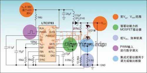 圖:基于LTC3783的大功率PWM LED驅動電路