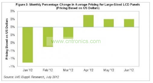 幫助推動6月價格上漲的突出因素包括廠商通過壓低產能利用率來嚴格控制產量,以及生產結構發生變化,導致部分面板型號出現供應緊張。雖然終端需求仍因美國經濟黯淡、歐元區債務危機和新興市場增長放緩的影響而保持疲軟,但隨著新的超級本的推出以及消費者為收看倫敦奧運會而購買新電視,預計今年下半年需求將改善。