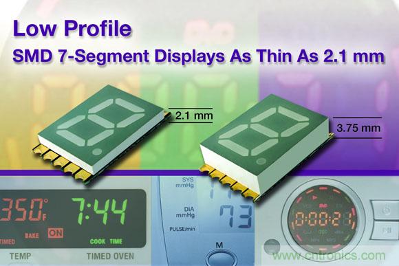 今天推出的器件采用發光均勻、無污點的數碼管和灰色封裝表面。VDMx10A1系列LED數碼管采用共陽極配置,封裝高度只有2.1mm。VDMx10x0系列器件提供共陽極和共陰極配置,封裝高度為3.75mm。
