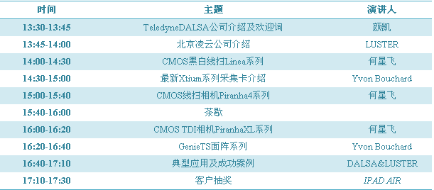 秉承客戶至上,以市場需求為導(dǎo)向,感謝一路上有新老客戶的陪伴支持與理解,才使得凌云公司在前進(jìn)的道路上有足夠的動力與方向,看到了美好的視覺給人們帶來的豐富多彩的生活。此次答謝會得到了Teledyne DALSA的高度重視與支持,屆時,DALSA亞太區(qū)OEM技術(shù)總監(jiān)Yvon Bouchard、 DALSA線掃描產(chǎn)品資深產(chǎn)品經(jīng)理何星飛等大咖將會帶來國際前沿的技術(shù)與產(chǎn)品資訊: