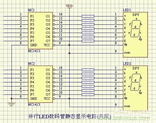 并行LED數(shù)碼管靜態(tài)顯示電路(共陽)