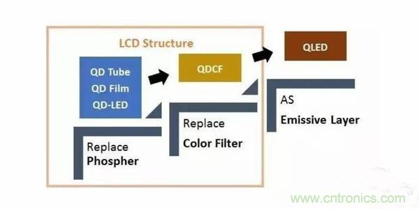 大致可以分為三個階段:一、取代傳統(tǒng)的發(fā)光熒光粉;二、去掉彩色濾光片;三正式成為發(fā)光層(也就是目前OLED的像素點自發(fā)光的形式)