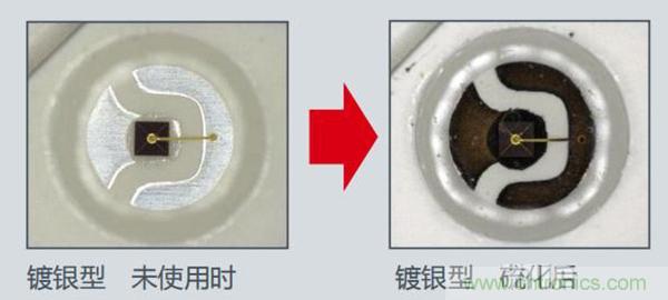 【導讀】“才幾個月的新車,本來高位剎車燈在剎車時燈光高亮,可現在剎車時燈光變暗紅了不知道怎么辦。”相信不少人有這樣的困擾,這是因為LED內部使用的銀受環境氣體影響被硫化了,顏色變黑,從而造成LED光亮度的降低。近年來LED的使用環境越來越嚴苛,防止硫化已成為確保可靠性不可或缺的一環。為應對這個挑戰,ROHM面向汽車領域開發出首款完全無銀的高亮度紅色LED“SML-Y18U2T”,非常有助于汽車剎車燈等在嚴酷環境下使用的應用的可靠性高提升。