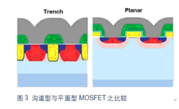 • 在硅片上蝕刻垂直溝道獲得更高的單元密度和更低的導通阻抗