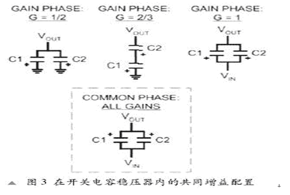 由于具有電壓增益的關系,一個開關電容穩壓器是比線性穩壓器更有效的解決方案,這個電壓增益是通過在雙相位(充電相位和傳輸相位)中的堆疊電容器和并行電容器所取得的輸入電壓與輸出電壓比率。例如:位于增益配置中的一個開關電容轉換器的1/2將把一個3.6V的輸入電壓(VIN)轉變為1.8V的輸出電壓(VOUT)。如果要求的電壓(VOUT)是1.5V,那么功耗僅為300mV與負載電流的乘積。這相當于83%的效率。
