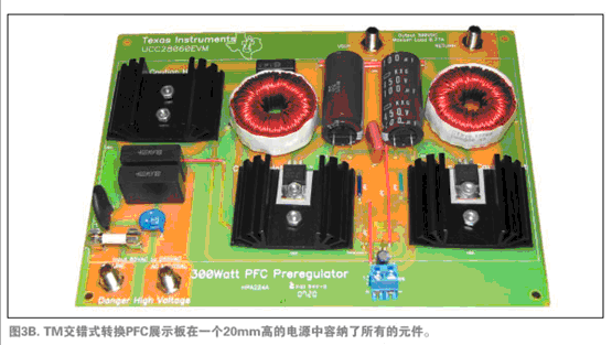 過渡模式升壓PFC成功地用于300瓦的大型電源中。在較高的功率時,功率電感過大而且也不太實際。同樣,輸入EMI濾波器也更為昂貴。
