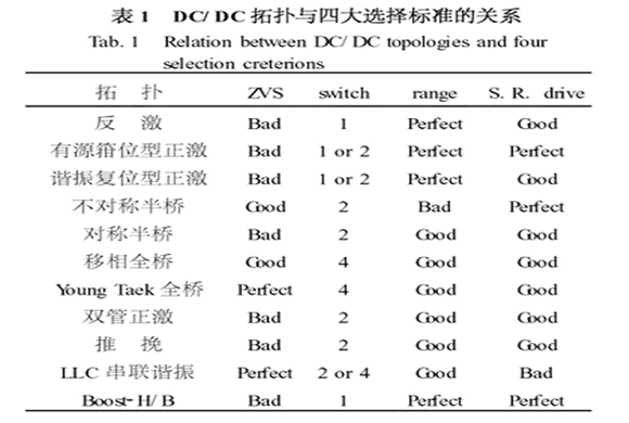非隔離型的DC/DC 拓撲結構并不多,通常根據電壓的升降要求以及簡單性原則就可以比較容易確定最佳方案。 所以下面的標準主要是針對隔離型的DC/DC。 此外,標準的量化是建立在目前元器件的水平上。 隨著元器件的發展,這些標準的量化也是動態發展的;再者,電源輕小化是目前主流電源追求的重要指標,輕小化體現在電力電子線路上就是要求高頻化。 所以下面的標準也是建立在電源體積要盡量小的前提上。