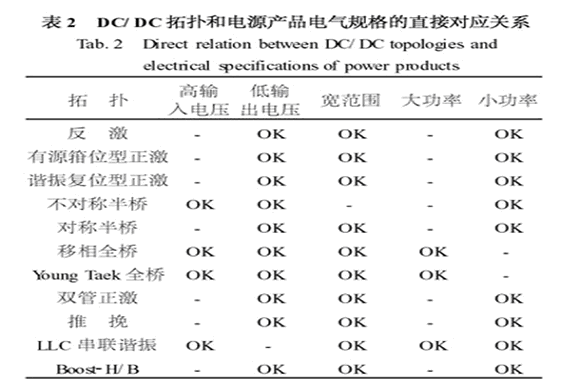 表1是經典DC/DC拓撲和最新的DC/DC拓撲與四大選擇標準的關系。 表2是根據表1和以上的分析,得到DC/DC 拓撲和電源產品電氣規格的直接對應關系,可供電源產品設計者方便的使用。 由于篇幅關系,表1和表2的詳細分析略。 其中提到一些最新的DC/DC 拓撲可以參見文獻。