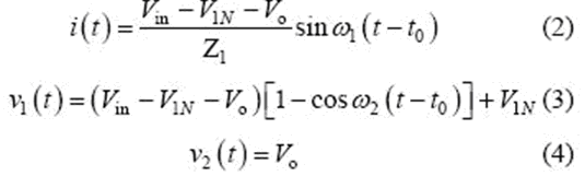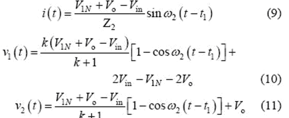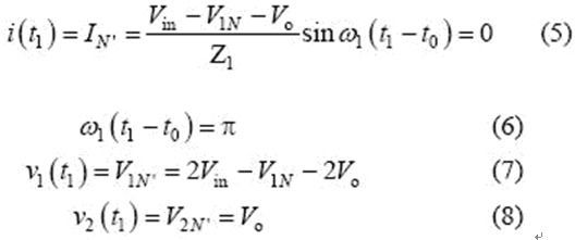 當串聯諧振電流為0(即t1 時刻)時,該模式結束,可得到如下表達式: