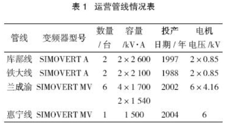 中國石油管道公司運營管線應用高壓大功率變頻器情況如表1所列。