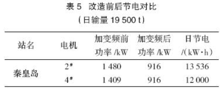 通過變頻改造的手段消除秦皇島站節流損失,該站日節約高壓耗電1.2 萬kW•h 左右,按年運行300 天,每kW•h 電費為0.5 元計算,則每年節約的運行成本約為12 000×300×0.5=180萬元