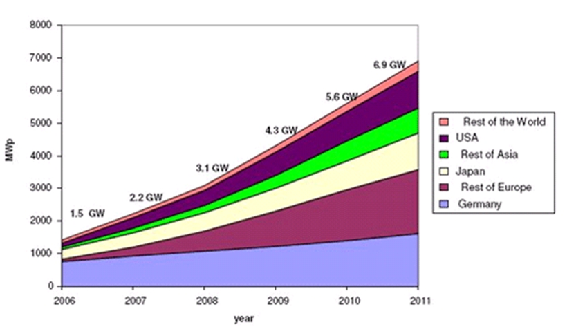 • 根據歐洲光伏工業協會(EPIA)的數據預測,2010年太陽能發電量的增幅可達4倍